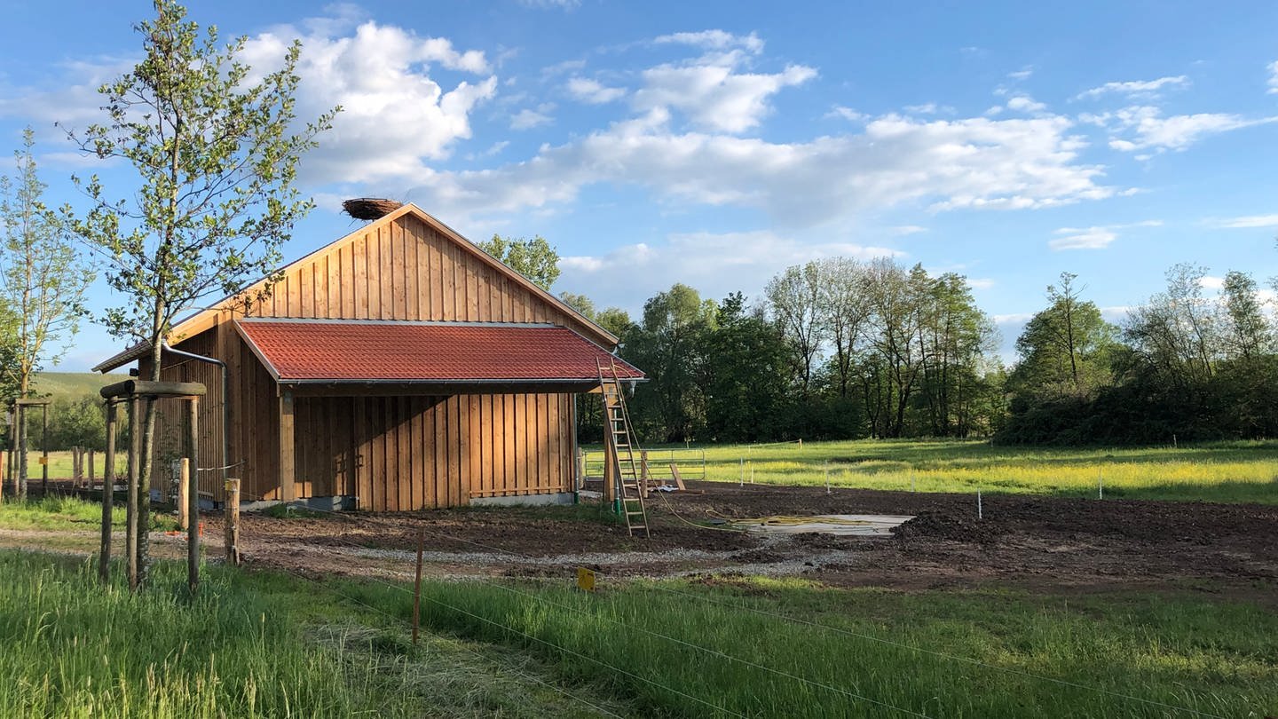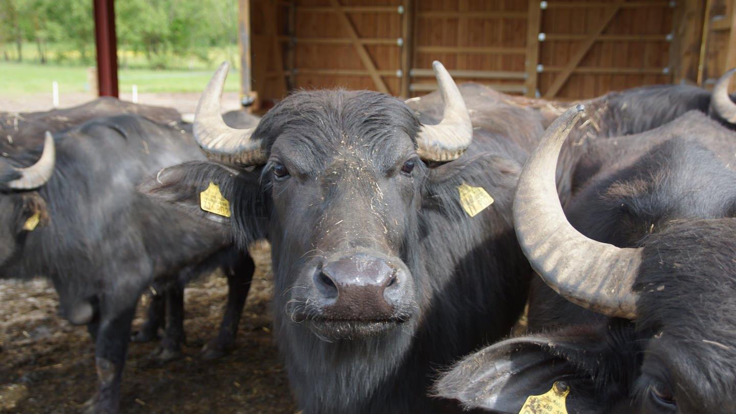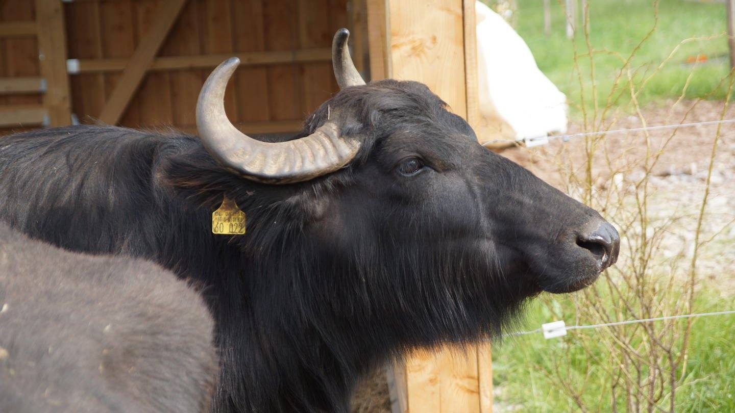 Die Projektbeteiligten freuen sich über die Ankunft der Büffel (von links): Felix Graf Adelmann vom Verein für Landschaftspflege und Naturschutz durch Beweidung im Bottwartal, Landrat Rainer Haas, Bürgermeister Ralf Zimmermann, Landwirt Andreas Weigle, Sponsorenvertreter Albert Dürr, Initiator Claus-Peter Hutter, Fördervereinsvorsitzender Gerhard Fahr, Landwirt Uli Weigle. Foto: Werner Kuhnle